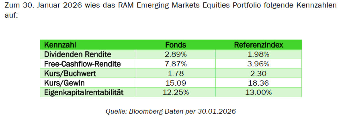 Die “RAM Emerging Markets Equities Strategie” bietet eine Alternative: ein diversifiziertes, stilkonsistentes Portfolio, das auf Bewertung, Qualität und Risikobalance basiert. Mit einer starken Historie risikoadjustierter Renditen und Abwärtsschutz bietet die Strategie Investoren einen systematischen und ausgewogenen Ansatz, um vom Wachstum der EM-Aktien zu profitieren und gleichzeitig die Risiken einer benchmarkbasierten Allokation zu reduzieren.